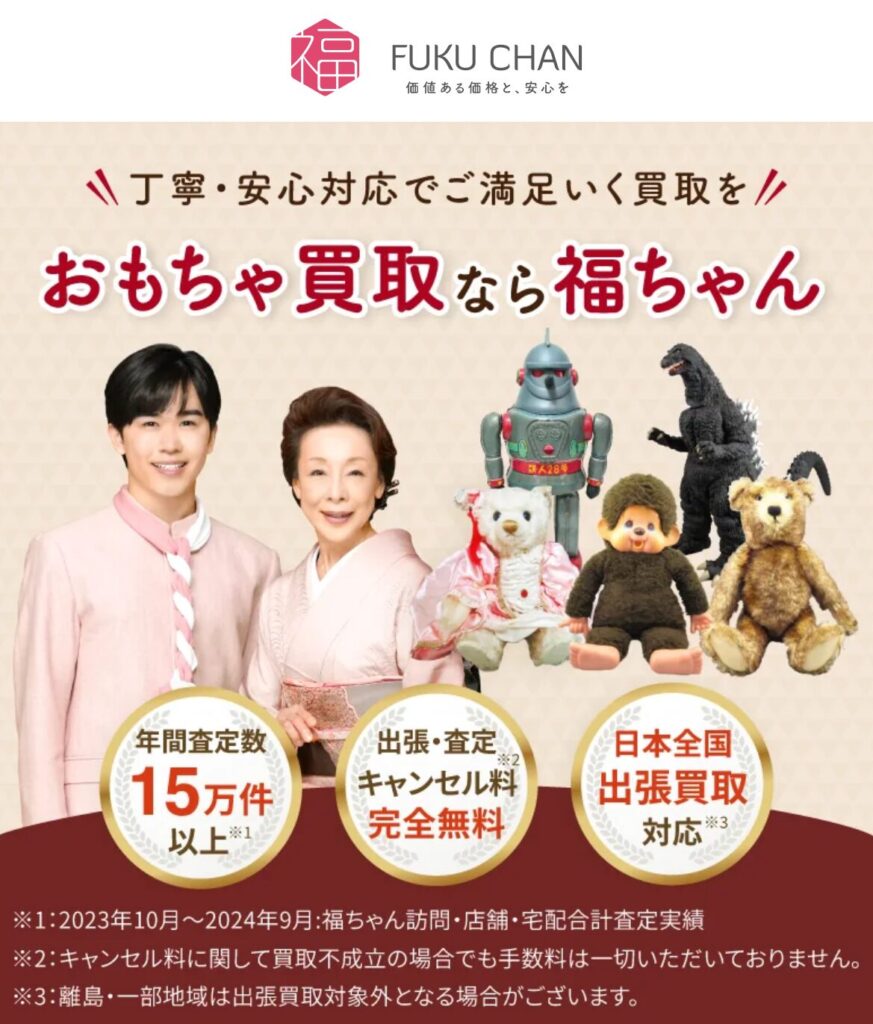 福ちゃんは、買取実績が800万点を突破している老舗のおもちゃ買取専門店。